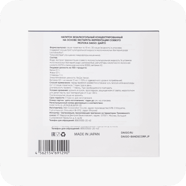 На конечном этапе производства Daigo Lux в очищенный ферментированный концентрат культурной жидкости вносят молочную кислоту и лимонную кислоту в качестве регуляторов кислотности.