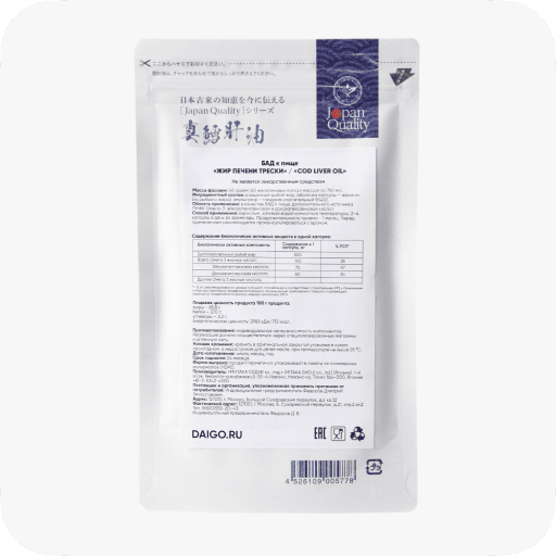 Именно это является главным преимуществом Омега-3/ COD LIVER OIL от бренда Daigo, так как высокое качество, а не количественное составляющее витаминов А